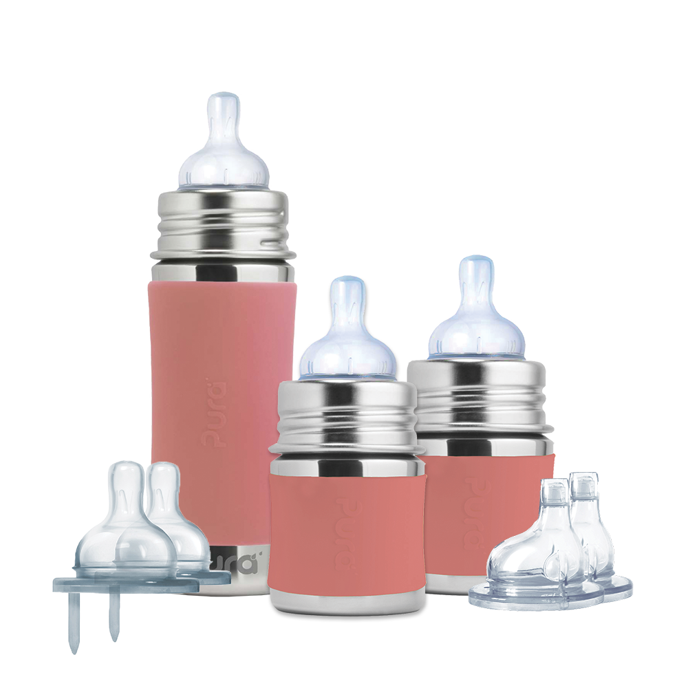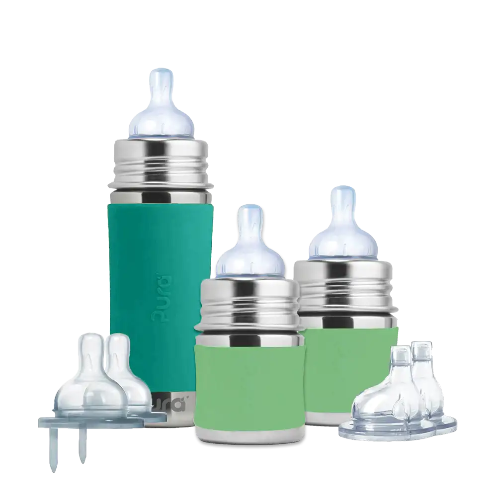You can get your littles started on sustainability from their very first sips! This bundle is ready to grow with your child from the moment they get home from the hospital to after they’ve learned to crawl with tops appropriate from newborn to one year of age. Simply swap the top to any Pura® lid to allow your bottle to match your child’s stage of life!