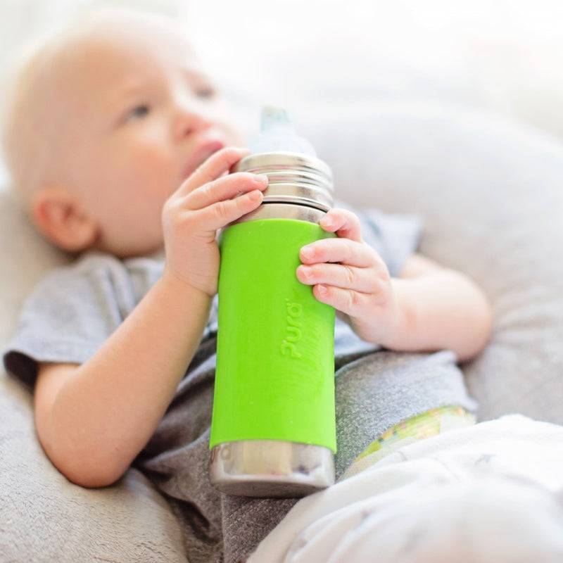 • Baby Grows... Bottle Evolves™: This bottle easily converts into an infant bottle, straw bottle, or sport/water bottle by simply swapping the sippy spout out for another Pura silicone lid